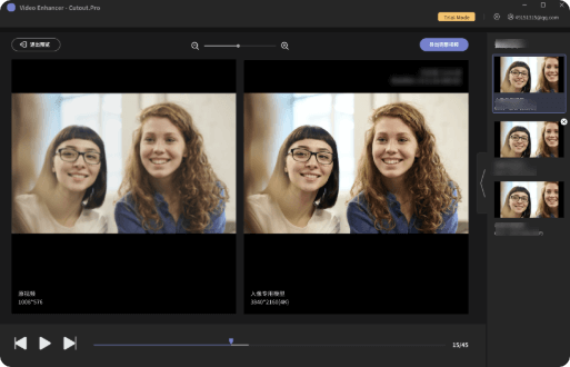 - 将视频分辨率提高至 2K/4K,通过分辨率增强模型增强清晰度和细节。