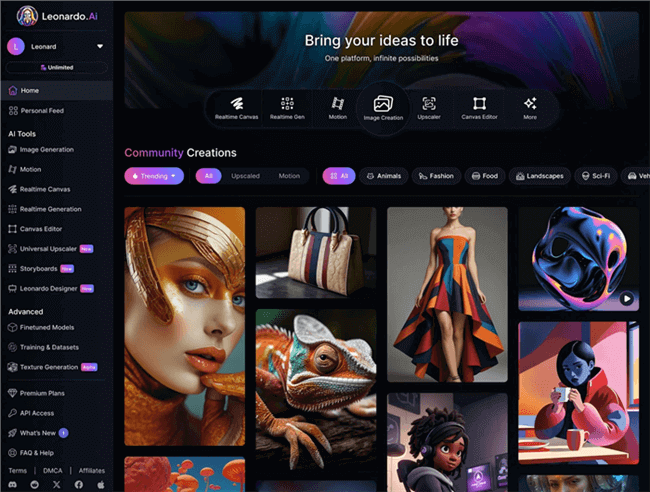 凭借其先进的人工智能图片和视频生成功能,Leonardo AI 是一个致力于彻底改变创意事业的尖端平台。它可以让用户在图形设计、营销和摄影等各个行业制作由人工智能驱动的优质内容。无论是改善视觉营销还是尝试新的艺术技巧,Leonardo AI 都能为所有场景提供适应性强的解决方案。