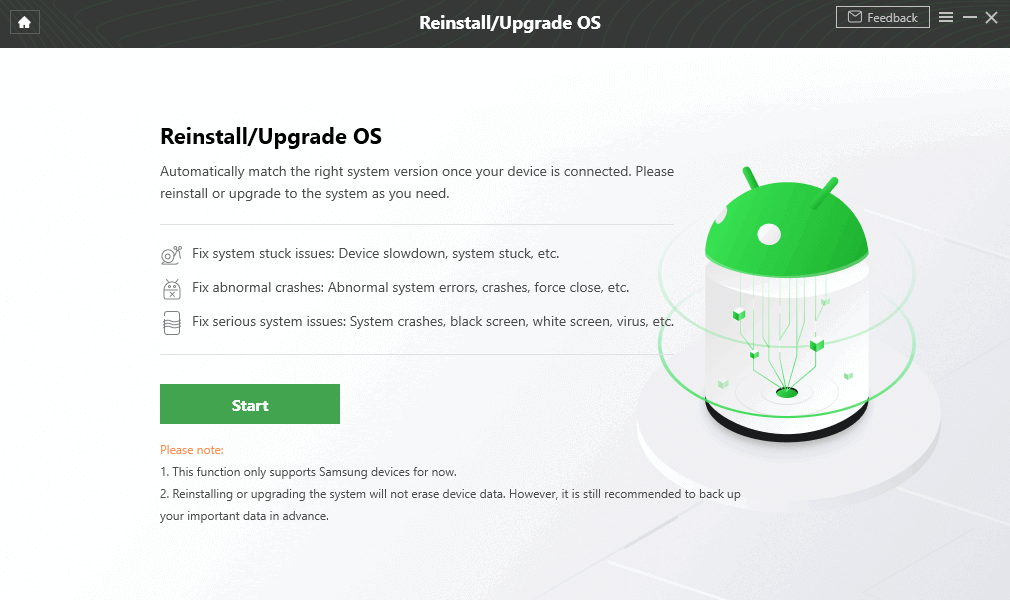步骤1。获取DroidKit 安装并启动>选择系统重新安装模式。