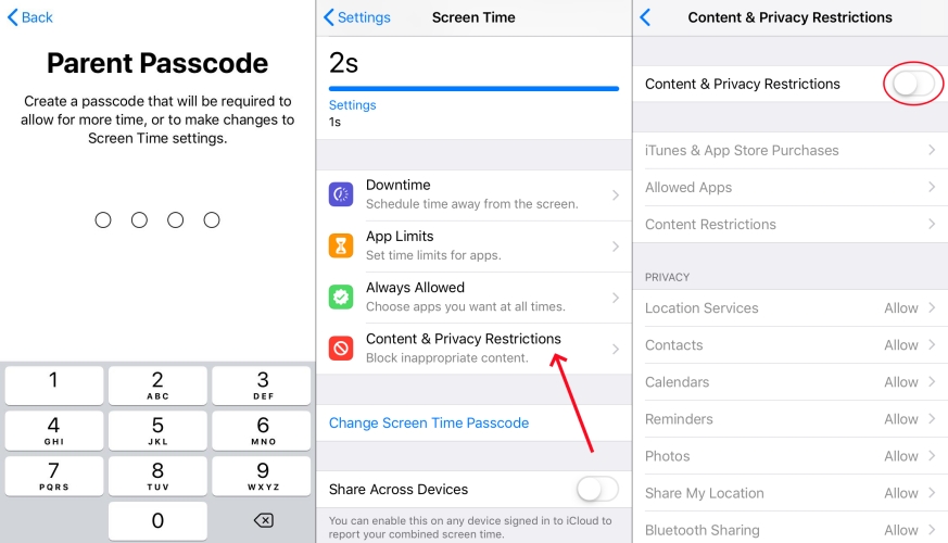 步骤 4。继续输入屏幕时间密码以禁用家长控制。