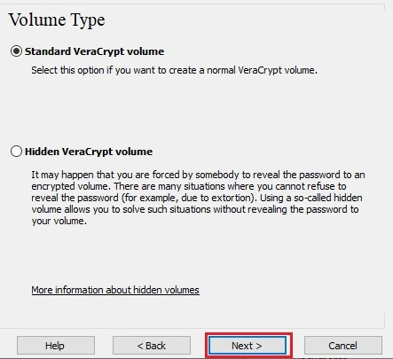 第 4 步 – 然后单击“标准 VeraCrypt 卷”。