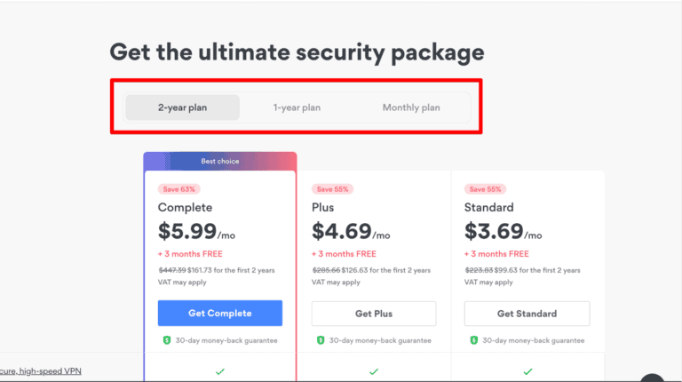 当您购买两年计划而不是包月或包年计划时,NordVPN 会便宜得多。由于它还承诺 30 天退款保证,因此您可以试用 NordVPN 30 天,然后决定是否要保留订阅。