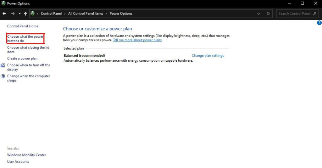 - 在窗口的左侧,选择选择电源按钮的功能。