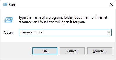 进入 ”devmgmt.msc” 在运行实用程序中