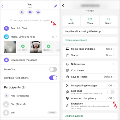 Viber 和 WhatsApp 均提供端到端加密以增强安全性,聊天中的所有消息、通话、照片、视频和媒体均受到端到端加密的保护,从而保护您的隐私并防止未经授权的访问。然而,仍然存在细微差别。