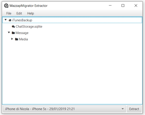 前往WazzapMigrator 网站并下载并安装WazzapMigrator 提取器。 WazzapMigrator Extractor 可以帮助您轻松提取 iTunes 备份。设置 WazzapMigrator 提取器。安装成功后,它将解析 iTunes 备份。点击iTunes备份然后单击提炼提取所有 iPhone 内容。
