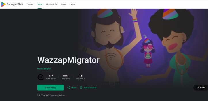 在 Google Play 商店上,大约有 5260 条关于 WazzapMigrator 的评论。