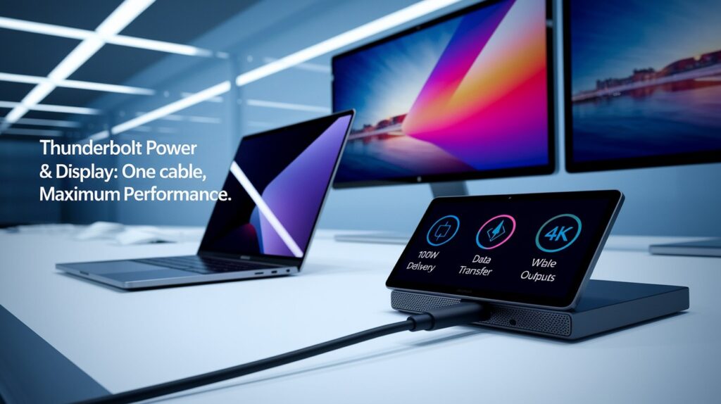 电力传输是 Thunderbolt 的亮点。 Thunderbolt 3 和 4 可通过单根电缆提供高达 100 瓦的功率,足以为大多数笔记本电脑充电,同时全速传输数据。