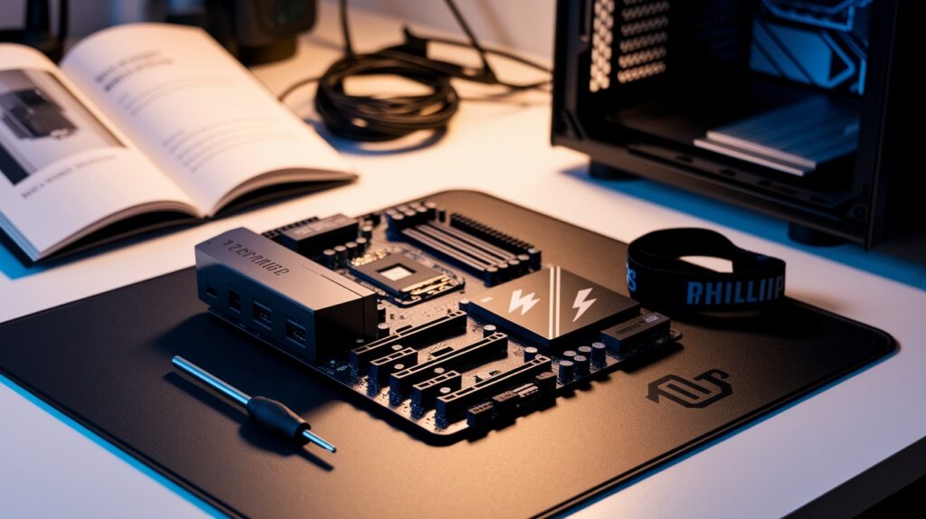 查看后 I/O 面板附近、其他 USB 接头旁边,或者有时靠近 CPU 插槽区域。这里有一个快速识别技巧:TB 接头通常在主板附近印有“TB”或“Thunderbolt”。一些制造商使用小闪电符号代替。