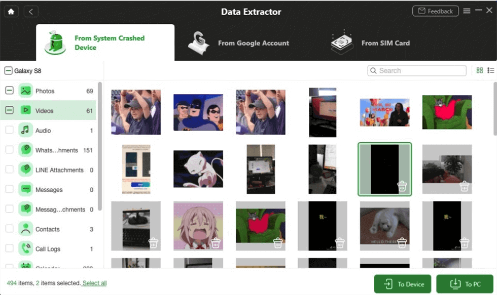 最棒的是,DroidKit 可以检索 20,000 多个 Android 设备上的 APK 和 WhatsApp 对话、照片、电影、音乐录音、电子邮件、ZIP 文件、电子书、电话记录、联系方式、日历事件,甚至 Line 对话。