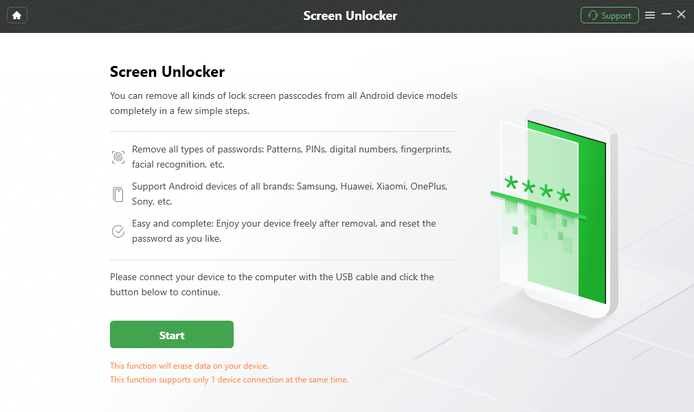 DroidKit 缓解了这个普遍存在的问题。该小工具无需输入密码即可解锁智能手机PIN、密码、指纹、面部识别或图案。请注意,这可能会永久删除设备上存储的所有信息,因此仅在需要恢复时才执行此操作。建议您在继续之前先对计算机进行 USB 备份。 DroidKit 可以支持超过 20,000 种搭载 Android 操作系统的手机型号,甚至无需 root 即可解锁设备。