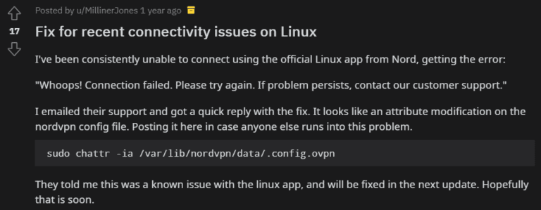 如果您收到“哎呀!访问 /run/nordvpn/nordvpnd.sock 的权限被拒绝”错误消息,请在重新启动设备之前使用以下命令: