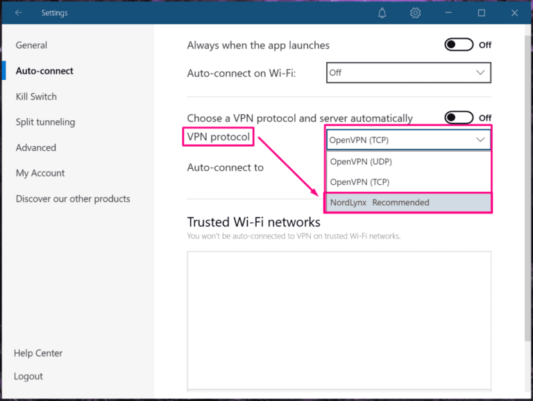- NordLynx 应该是默认 VPN 协议, 但您可以通过以下方式确认这一点: