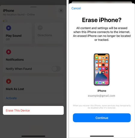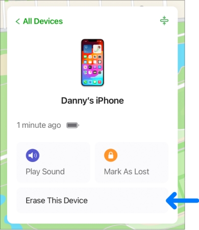 如果您拥有多台 Apple 设备,“查找我的”应用程序还可用于帮助您重置家长控制密码。只要在受限制的设备上启用“查找我的 iPhone”,您就可以直接从使用同一 Apple ID 登录的另一台 Apple 设备中找到并管理它。从“查找我的”应用程序中,您可以远程擦除受限设备,这将删除所有设置和限制,包括家长控制密码。擦除完成后,您将能够再次设置 iPhone。