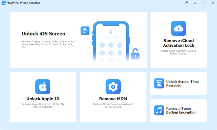 如果您无法回忆起 iPhone 上的家长控制密码,MagFone iPhone Unlocker 会非常有帮助。 MagFone iPhone Unlocker 不需要 Apple ID 密码,也不会删除任何数据,可以帮助您在父母不知情的情况下删除家长控制。此外,当您忘记 iPhone 锁屏密码和 iTunes 备份密码时也可以使用它。只需按照以下步骤关闭 iPhone 上的屏幕时间限制: