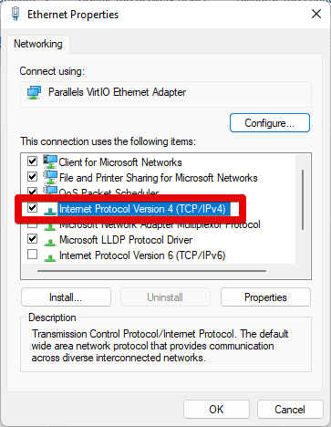 - 然后单击“的复选框互联网协议版本 4 (TCP/IPv4)”。