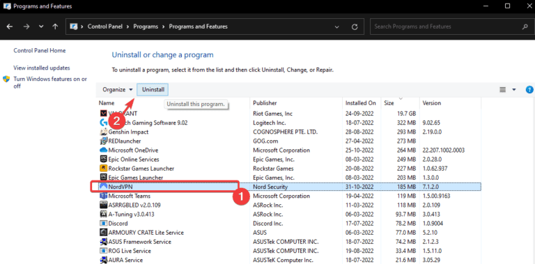 有时,您的防火墙设置或防病毒软件可能会阻止应用程序正常工作或阻止互联网连接。你可以暂时禁用它们然后启动您的 NordVPN 客户端。