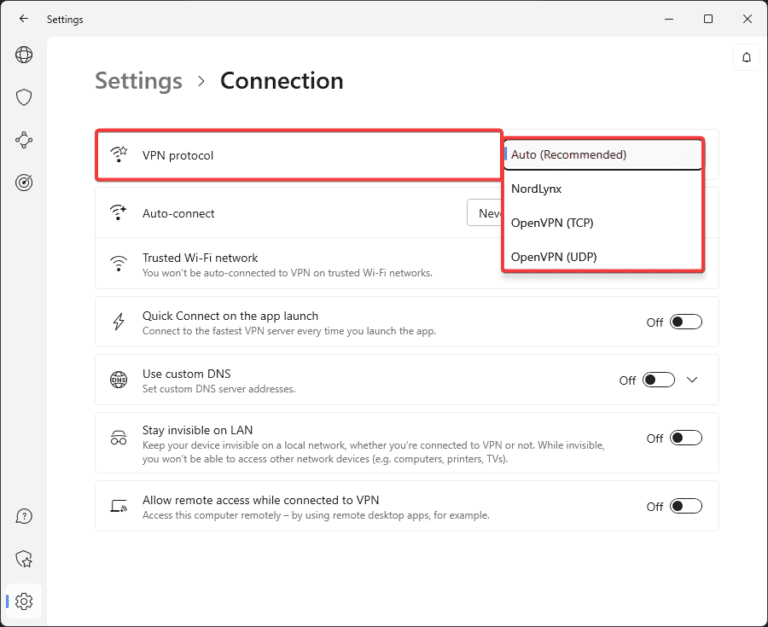 如果没有,更改 VPN 协议或连接到不同的服务器应该会有所帮助。