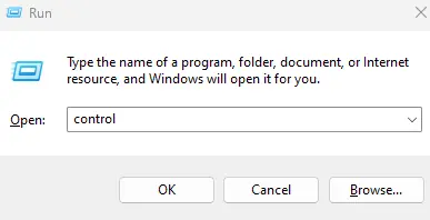 2. 输入“Control”并单击“确定”按钮。