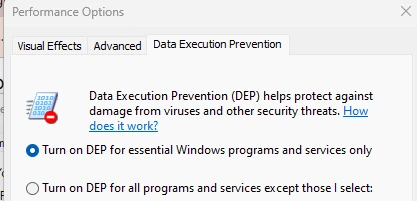 数据执行保护 (DEP) 是一项安全功能,可保护您的计算机免受病毒和其他威胁。但是,一些用户报告它可能导致 .exe 文件停止工作。在这种情况下,手动调整 DEP 设置可能会解决问题。