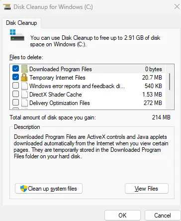4. 磁盘清理将计算您可以释放多少空间。完成后,将出现文件类别列表。
