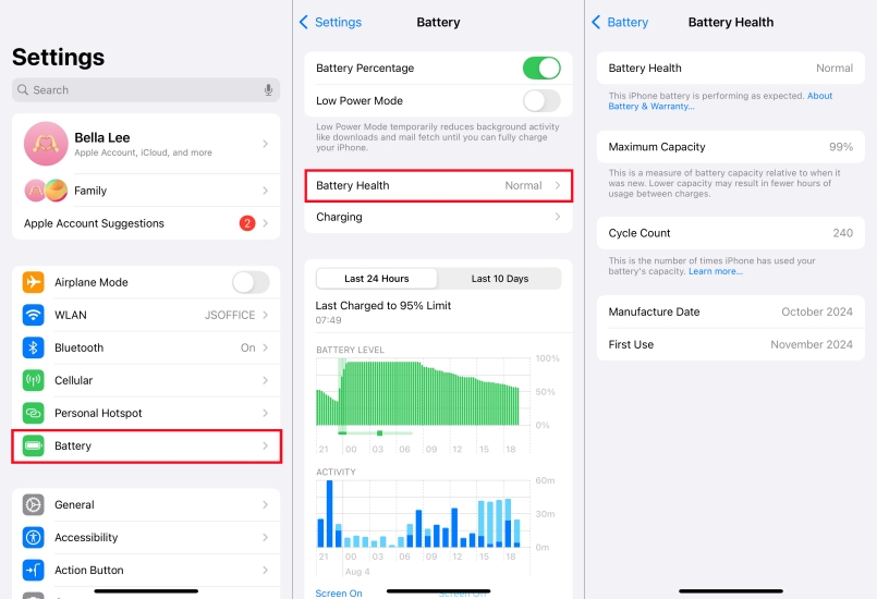 步骤1。前往设置 > 电池 > 电池健康状况和充电。