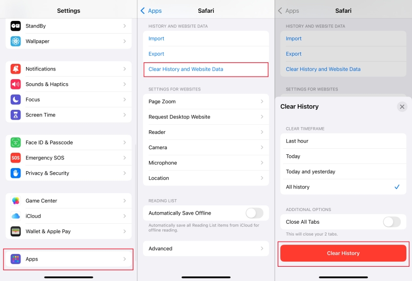 - 解决方案 3. 清除 Safari 缓存和 cookie。前往设置 > Safari,然后点击清除历史记录和网站数据。这会清除 Safari 中的所有历史记录。