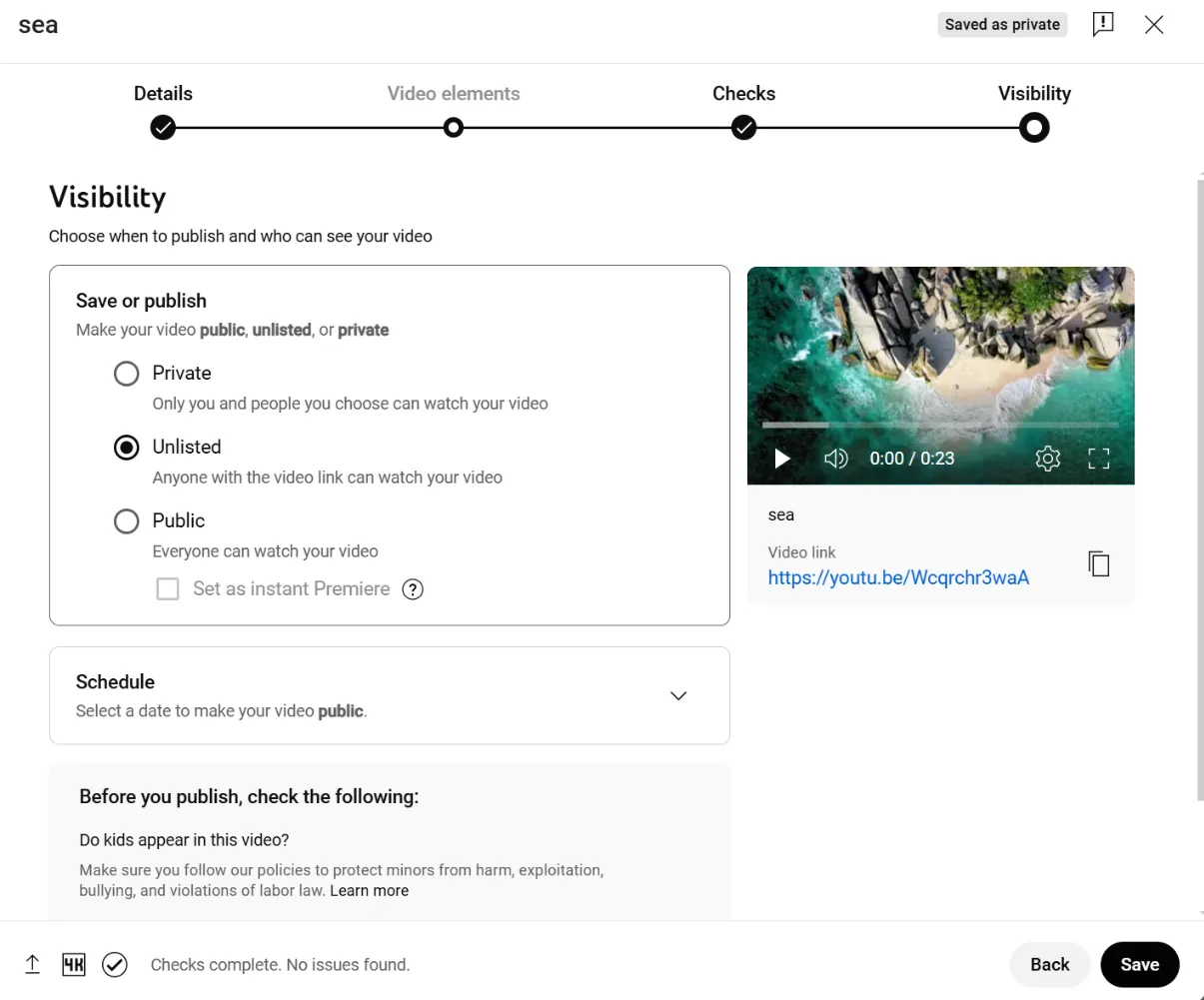 上传视频为不公开:如果您是上传者,请将视频设置为“不公开”,并等到更高分辨率版本(1080p、4K)完成处理后再将其公开。