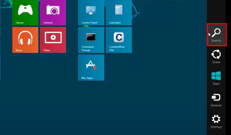 步骤1:按住您的Windows键和“c”按钮。这启动了“魅力“ 菜单。