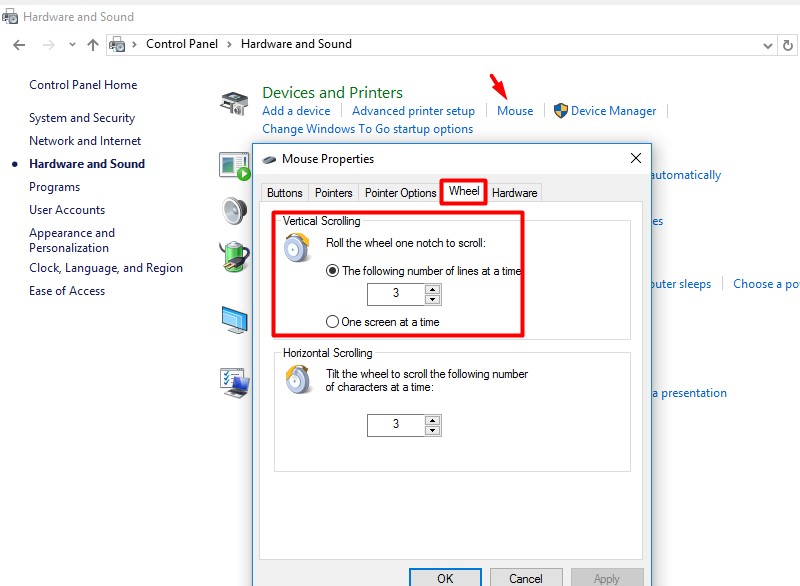 也可能是鼠标设置存在一些问题;您可以通过遵循以下步骤进行纠正: