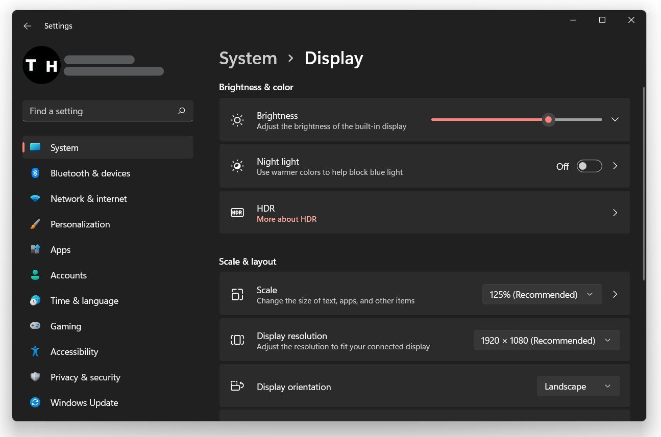 在你的显示设置,确保您使用推荐的显示分辨率和比例。在大多数情况下这应该是1920×1080。