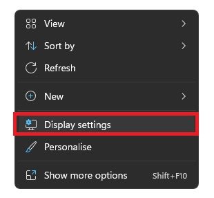确认硬件工作正常后,请继续调整 Windows 显示设置。要访问这些设置,只需右键单击桌面并从上下文菜单中选择“显示设置”。从这里,您可以探索各种选项来微调您的显示并有可能消除屏幕闪烁问题。