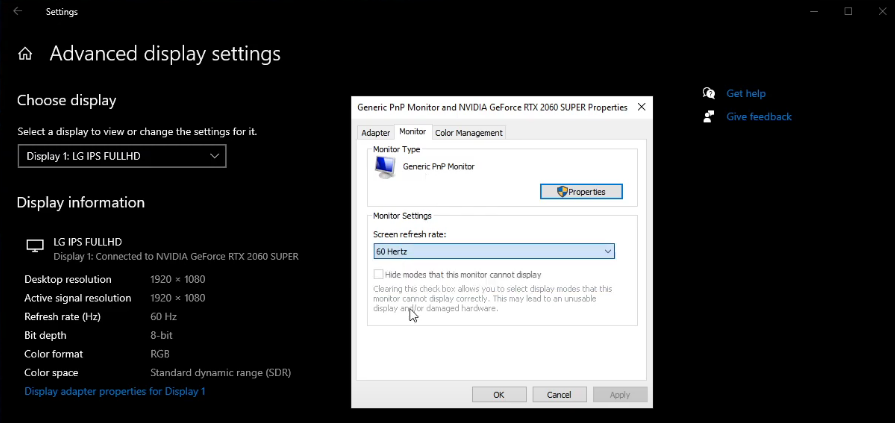 确保显示的刷新率与显示器宣传的刷新率相符。如果您不确定正确的值,通常可以在显示器的用户手册或制造商的网站上找到此信息。