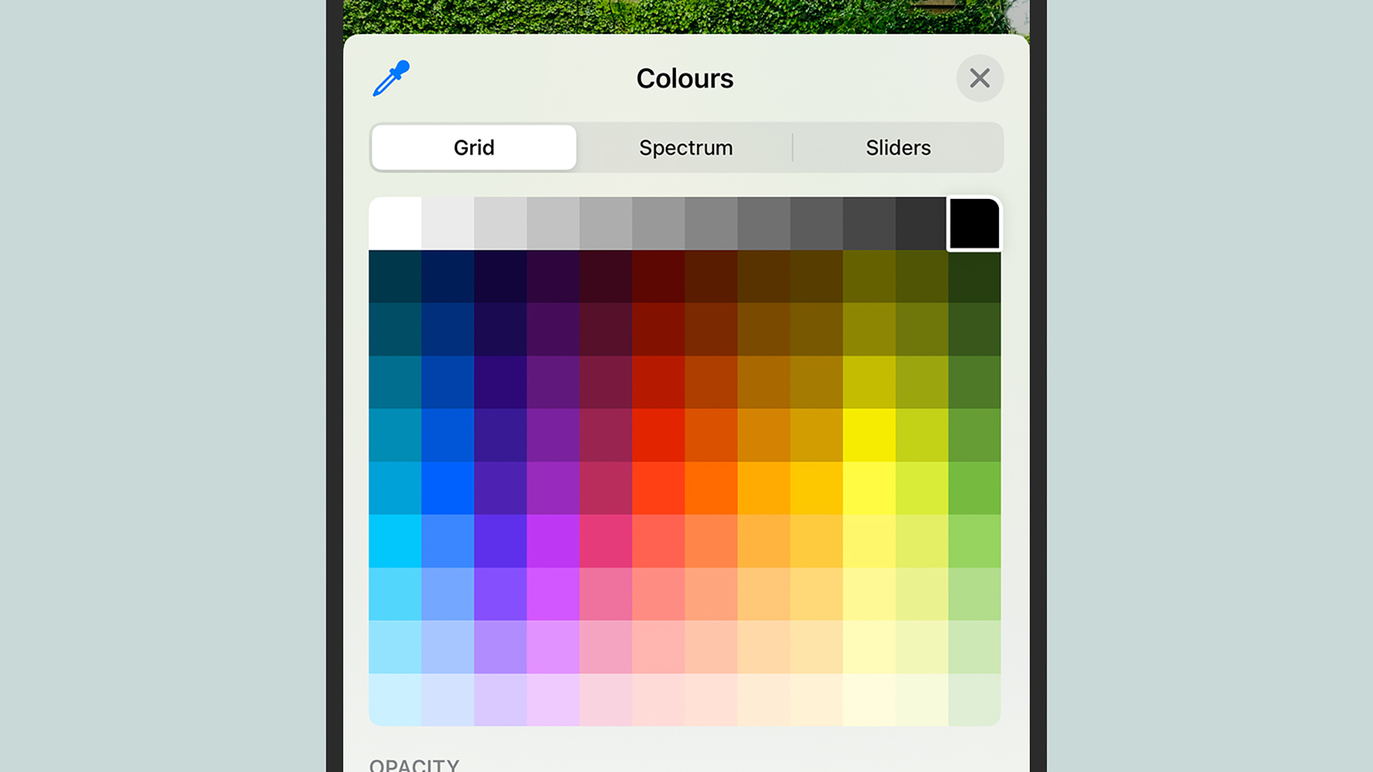选择工具后,您可以再次点击它来更改线条粗细和不透明度。如果您想更改颜色,请点击右侧的彩色点:您可以从颜色网格或色谱中进行选择,或根据需要混合红色、蓝色和绿色。您还可以点击屏幕上的任何颜色来选择它。