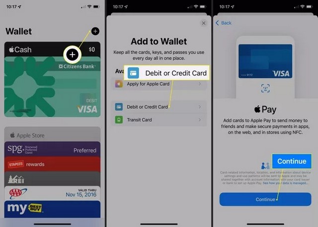 - 使用借记卡或信用卡设置 Apple Pay。