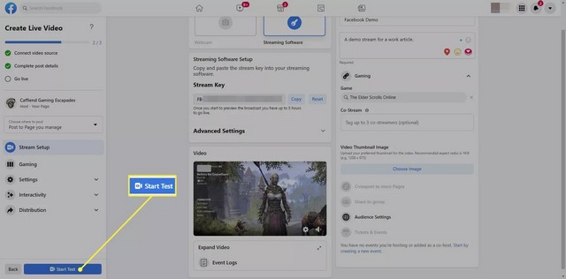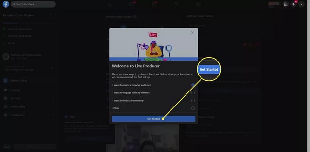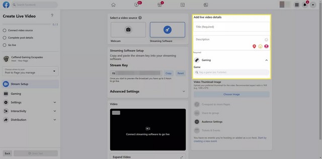 1. 设置 Facebook 游戏页面来托管您的直播。