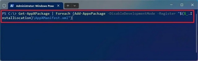 Get-AppXPackage | Foreach {Add-AppxPackage