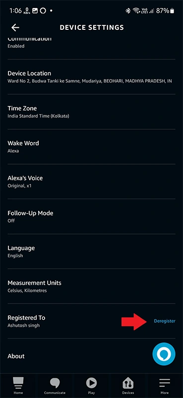 - 點擊取消註冊即可開始 Echo 智能揚聲器的重置過程。