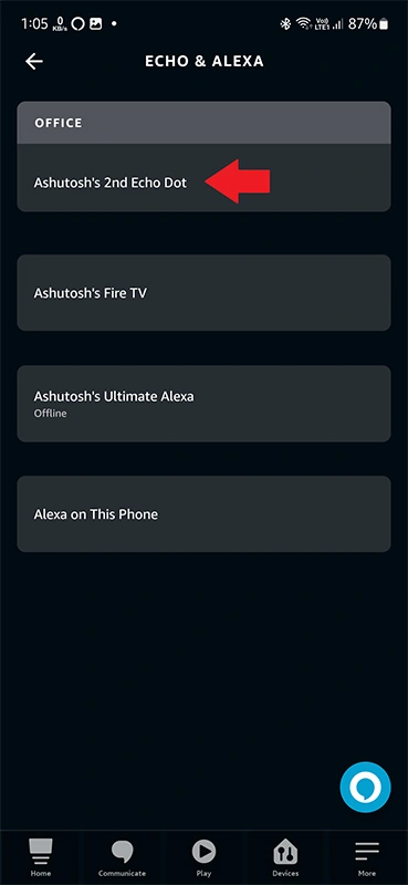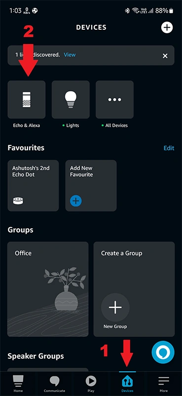 - 啟動 Alexa 應用程序並點擊底部的“設備”選項卡。