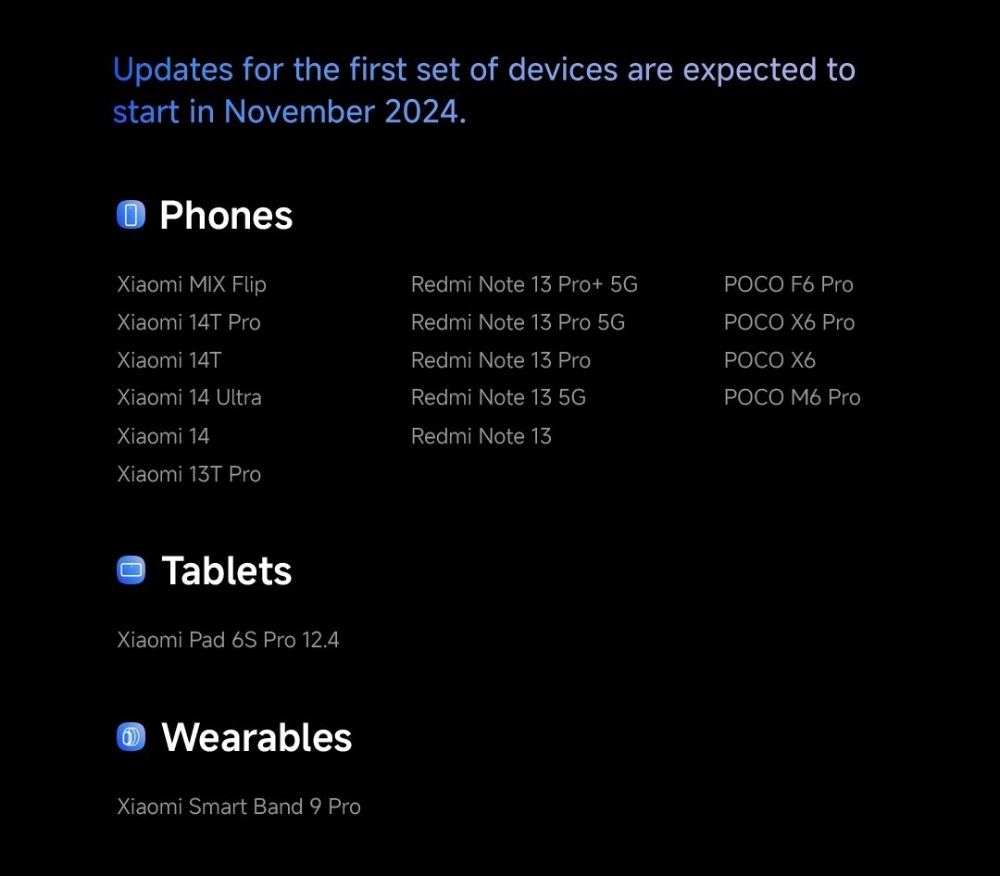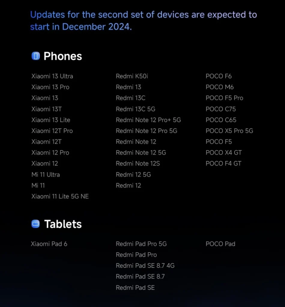 這是一份官方列表,這意味著如果您的設備在列表中,您將在未來幾個月內獲得基於 Android 15 的 HyperOS 2 更新。