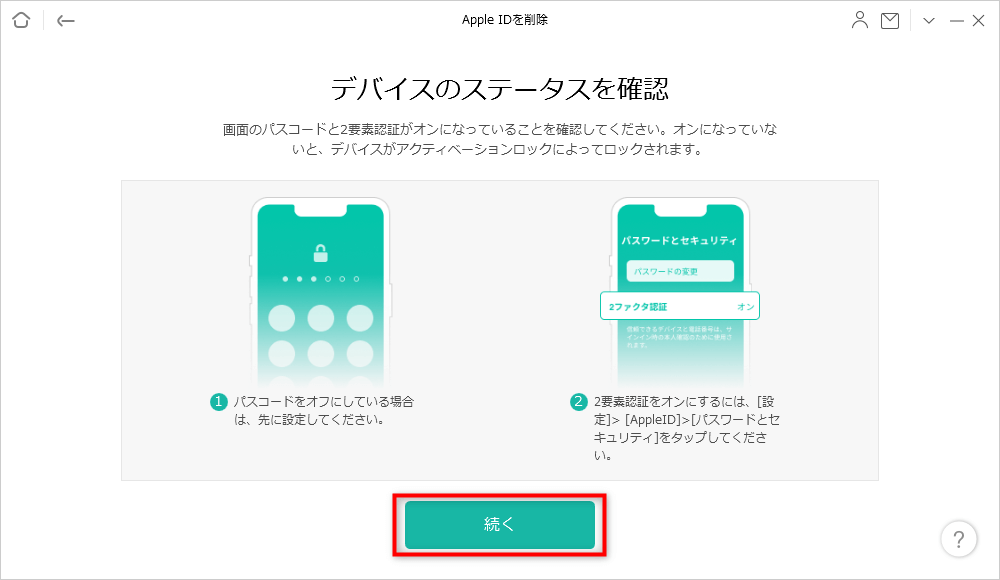 第5步:如果“查找我的 iPhone”已啟用並且您的設備運行的是 iOS 11.4 或更高版本,請確保您的屏幕密碼和兩步身份驗證已啟用。如果沒有,設備將被激活鎖鎖定 > "到下一個”按鈕開始 Apple ID 解鎖過程。