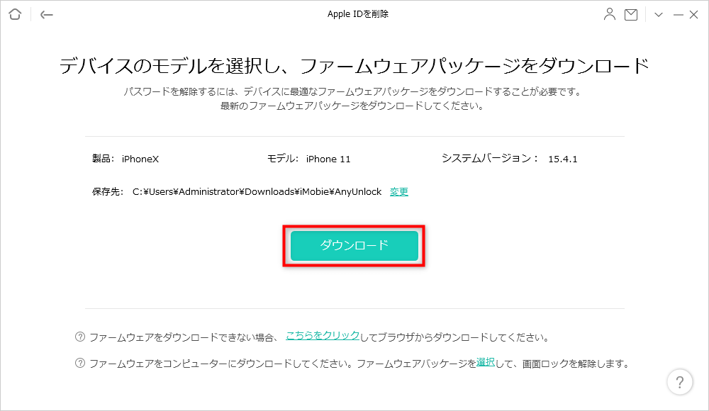 第6步:應用程序將下載固件包 > 固件包下載完成後,單擊立即解鎖”按鈕。AnyUnlock 會自動解鎖您的 Apple ID。