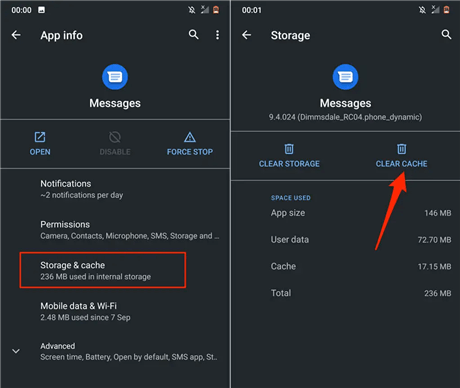 步驟2。選擇“存儲和緩存”>選擇“清除緩存”。
