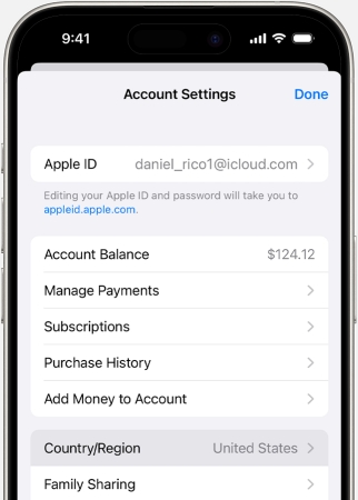 Apple ID 有時會根據其創建地點或設備使用地點進行區域鎖定。如果您的 Apple ID 註冊的地區無法提供某些服務或內容,則這些服務或內容可能無法訪問。將您的 Apple ID 設置為正確的區域可以幫助解決 Apple 帳戶無效的問題,尤其是當您在國外時。