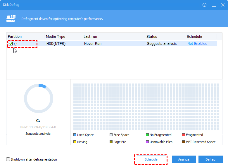 步驟3.如果您想定期對目標驅動器進行碎片整理,請單擊“計劃”。