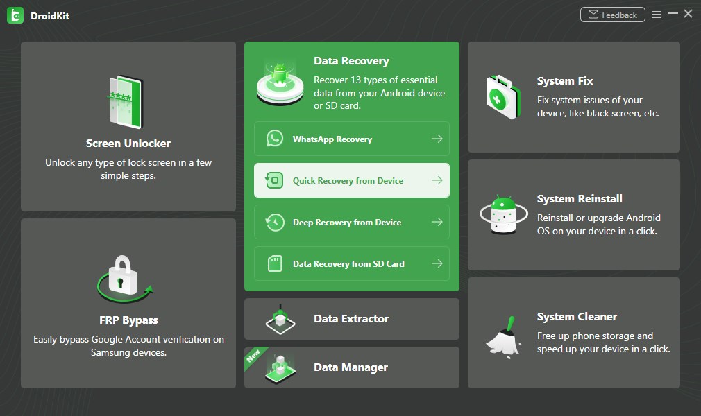 如果內部存儲或主板嚴重損壞,軟件將無濟於事。此時,可能需要一個專業的工具來進行芯片級的數據提取。您可以嘗試DroidKit,看看深度恢復模式是否可以幫助您恢復OnePlus數據。