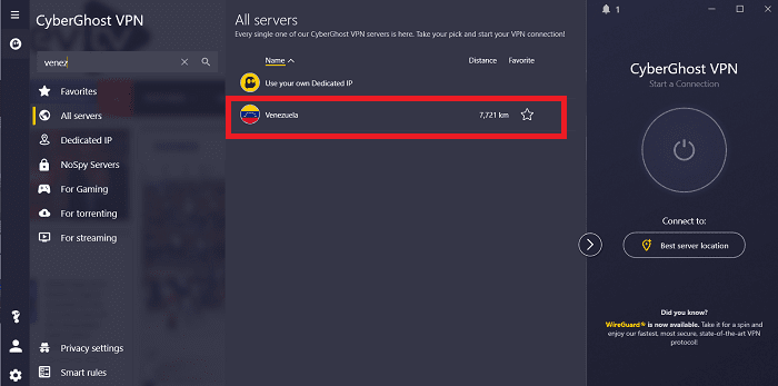 同樣,您可以通過以下方式更快地瀏覽本地網絡連接到加拉加斯的服務器,事實證明享有該國最好的速度。