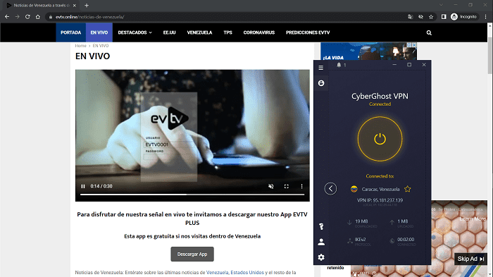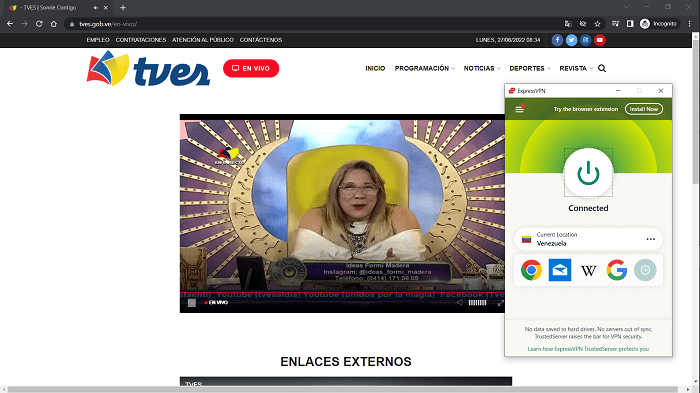 你可以觀看 VTV、TVes、Globovision 和其他委內瑞拉電視頻道如果您無法訪問標準互聯網連接,請使用 VPN 在國外進行訪問。