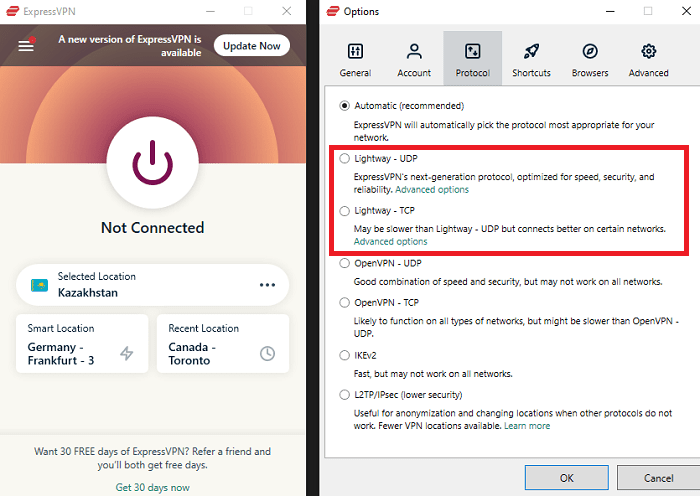 同樣,ExpressVPN 提供了一種輕量級但安全的 Lightway 協議,該協議不是圍繞 WireGuard 構建的,旨在為委內瑞拉用戶提供更高安全性和速度的平衡。