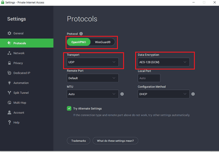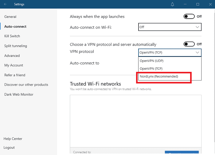 - 切換VPN協議。您可以通過常規連接(WireGuard/NordLynx/Lightway 協議)解鎖某些內容。相比之下,其他的則需要強大的混淆手段(OpenVPN/Lightway 協議)。因此,切換協議可以幫助您讓 VPN 重新運行。